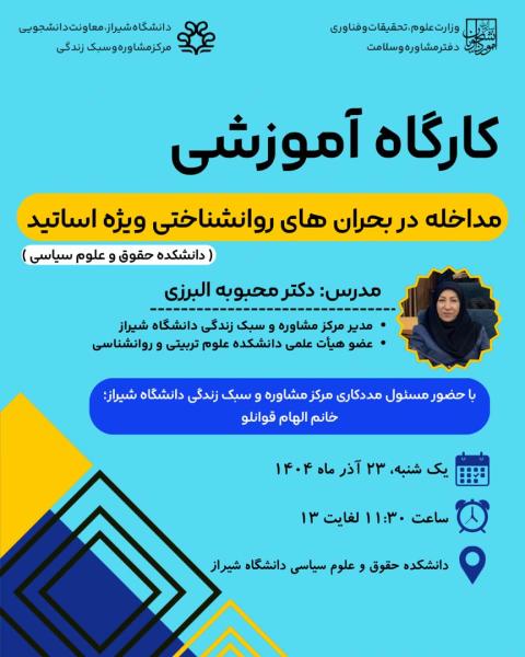 با تدریس سرکار خانم دکتر محبوبه البرزی، مدیر مرکز مشاوره و سبک زندگی دانشگاه شیراز، برگزار میشود.